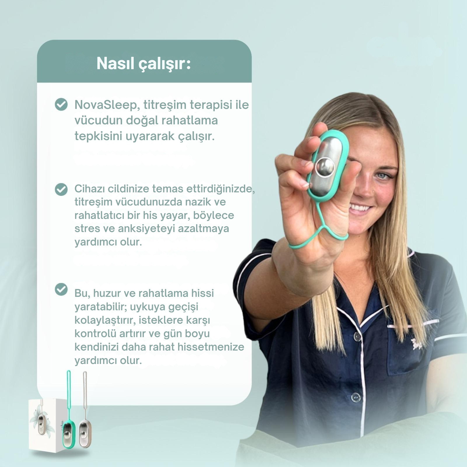 NovaSleep, avuç içine sığan, PC8 akupresür noktasında nazik mikro akım seçimleri göndererek rahatlamayı ve daha iyi bir uykuyu destekleyen bir cihazdır.